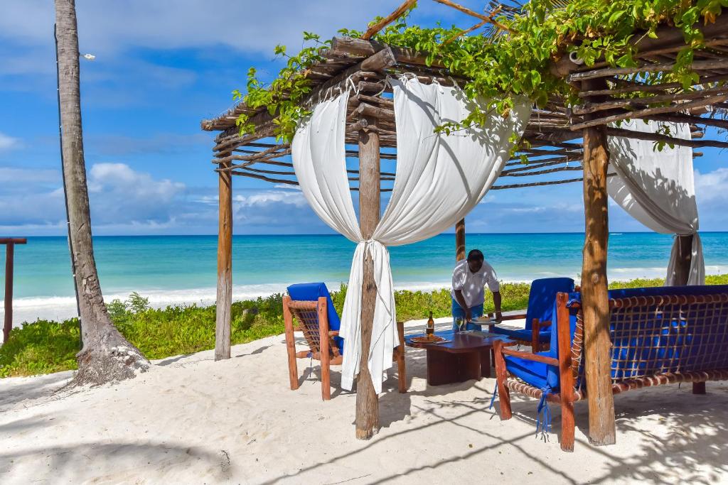 Unguja Kusini,UngujaIt will be our pleasure to welcome you to our Resort, our professional and friendly staff is committed to ensuring that your stay will be both enjoyable and comfortable. Our promise to you is a Hakuna Matata vacation. The Sands Beach Resort welcomes you to its lush gardens that slope down to an infinite white beach, where you can breathe in the fresh air and aromas of spices. You will be enchanted by the tropical backdrop of the luxuriant vegetation and wonderful coral reef. Experience an oasis of peace and relaxation in a stylish, warm and authentic atmosphere. In boutique resort with only 20 rooms and villas altogether facing a private white sandy beach of 6.500 mq, The Sands is the perfect destination to escape your everyday life.